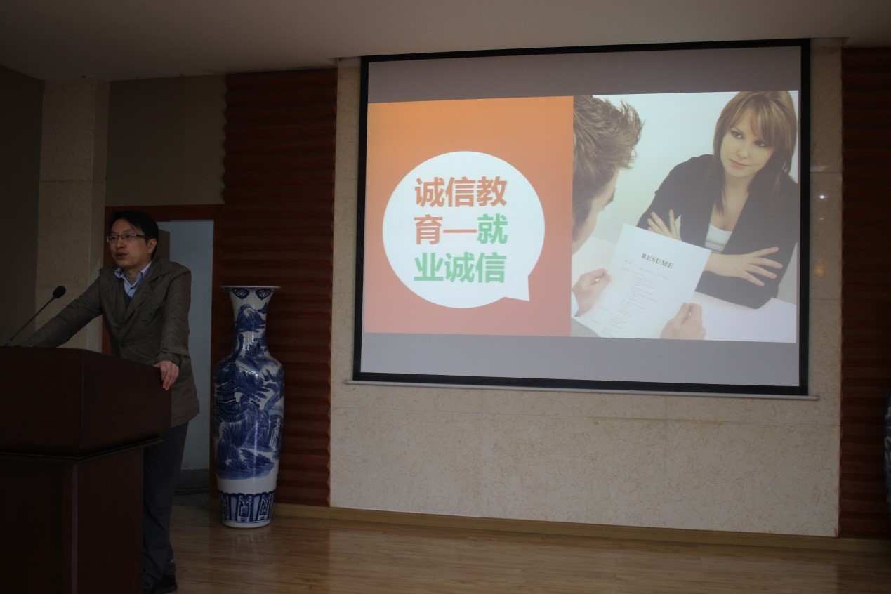 通过这次就业诚信教育课程,使大家对就业有了更加深刻的认识,对大家的就业信心有了极大促进;同时告诫大家要做好就业诚信,要对学院的声誉负责。本次课程在同学们的热烈掌声中圆满结束!