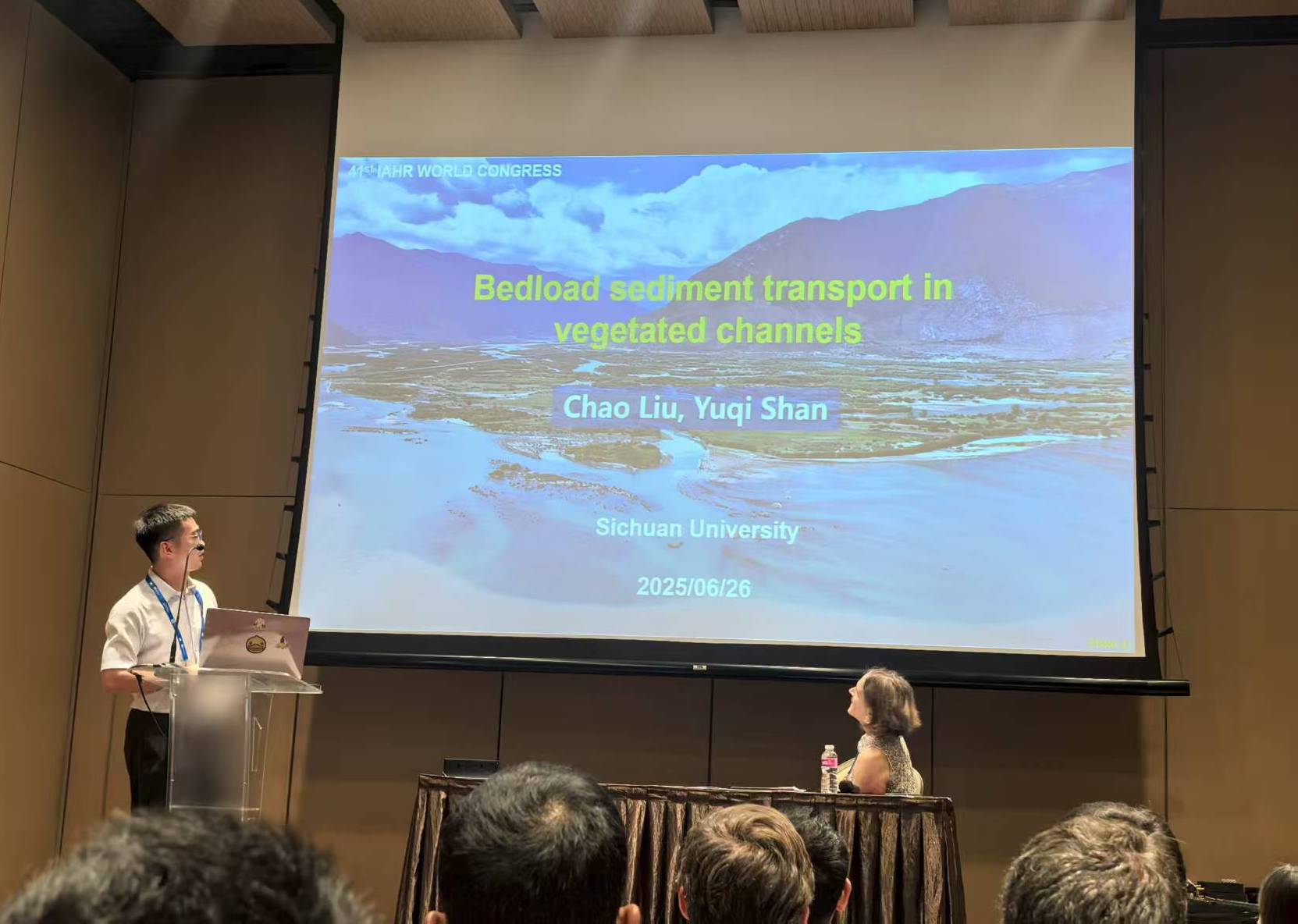 国际水利与环境工程学会(IAHR)第41届世界大会于2025年6月22日至27日在新加坡隆重举行。山区河流保护与治理全国重点实验室刘超研究员应英国皇家工程院院士Vladimir Nikora教授和麻省理工学院Heidi Nepf教授的邀请,在“复杂环境下植被-水沙相互作用研究进展”专题分会场作题为《植被作用下泥沙运动研究》的特邀主题报告。