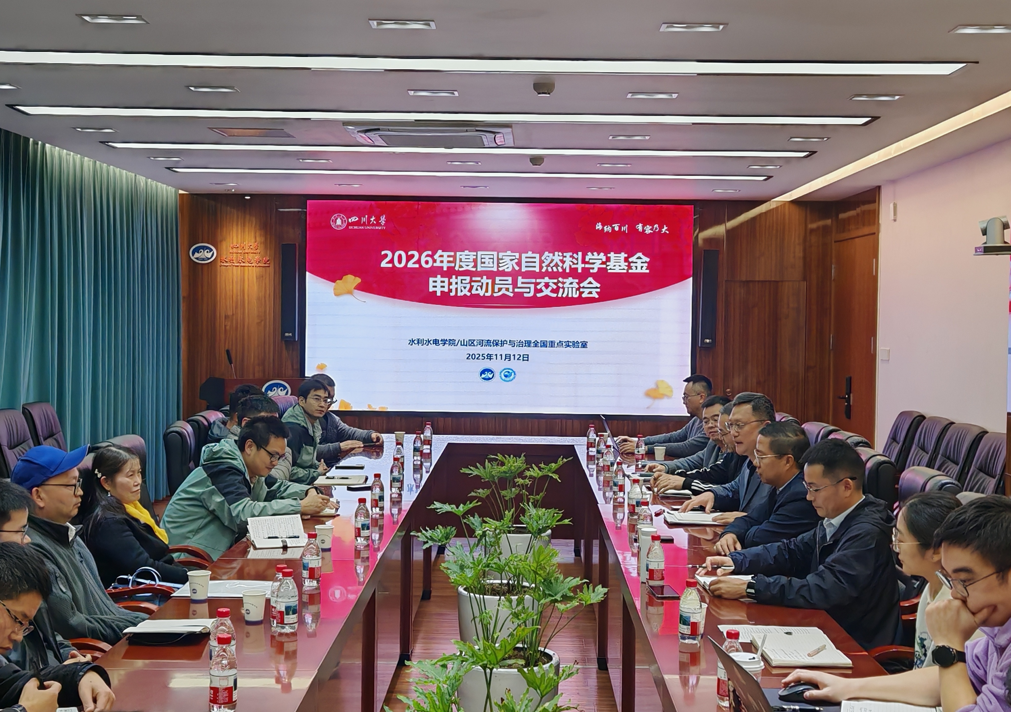 聂锐华副院长结合近年来学院基金申报与获批情况,详细阐述了学院基金工作的成效、不足以及当前面临的主要问题与挑战,布置了学院2026年度基金工作,并通报了2025年度的基金获批情况:共获批项目22项,包括创新研究群体(A类)1项--由刘超教授牵头的“山区河流水沙灾害防控理论与技术”项目、青年科学基金(B类)1项、重点类2项、面上12项,以及青年科学基金(C类)6项。