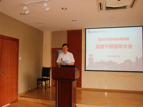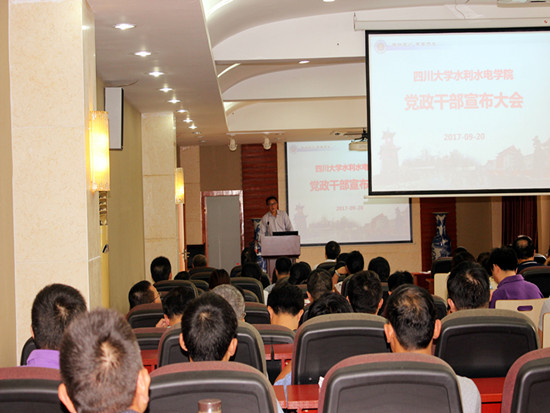 2017年9月20日下午,根据学校党委安排,色漫网 党政干部宣布大会在水电大楼A331举行。色漫网 委员会委员、常委、副书记兼纪律检查委员会书记陈志坚同志、色漫网 党校常务副校长范嗣云同志代表学校出席大会。学院党委书记杨兴国同志主持会议。