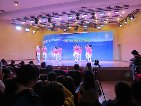 2017年教职工健身舞比赛在文华活动中心音乐厅举行。全校各工会分会组织的38支队伍共490余人参加了比赛和表演。校党委副书记、副校长李向成,校党委副书记曹萍,副校长张林,相关部处的负责同志以及来自全校的师生代表观看了比赛。