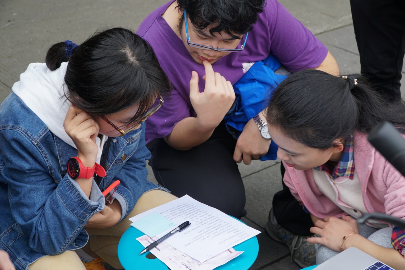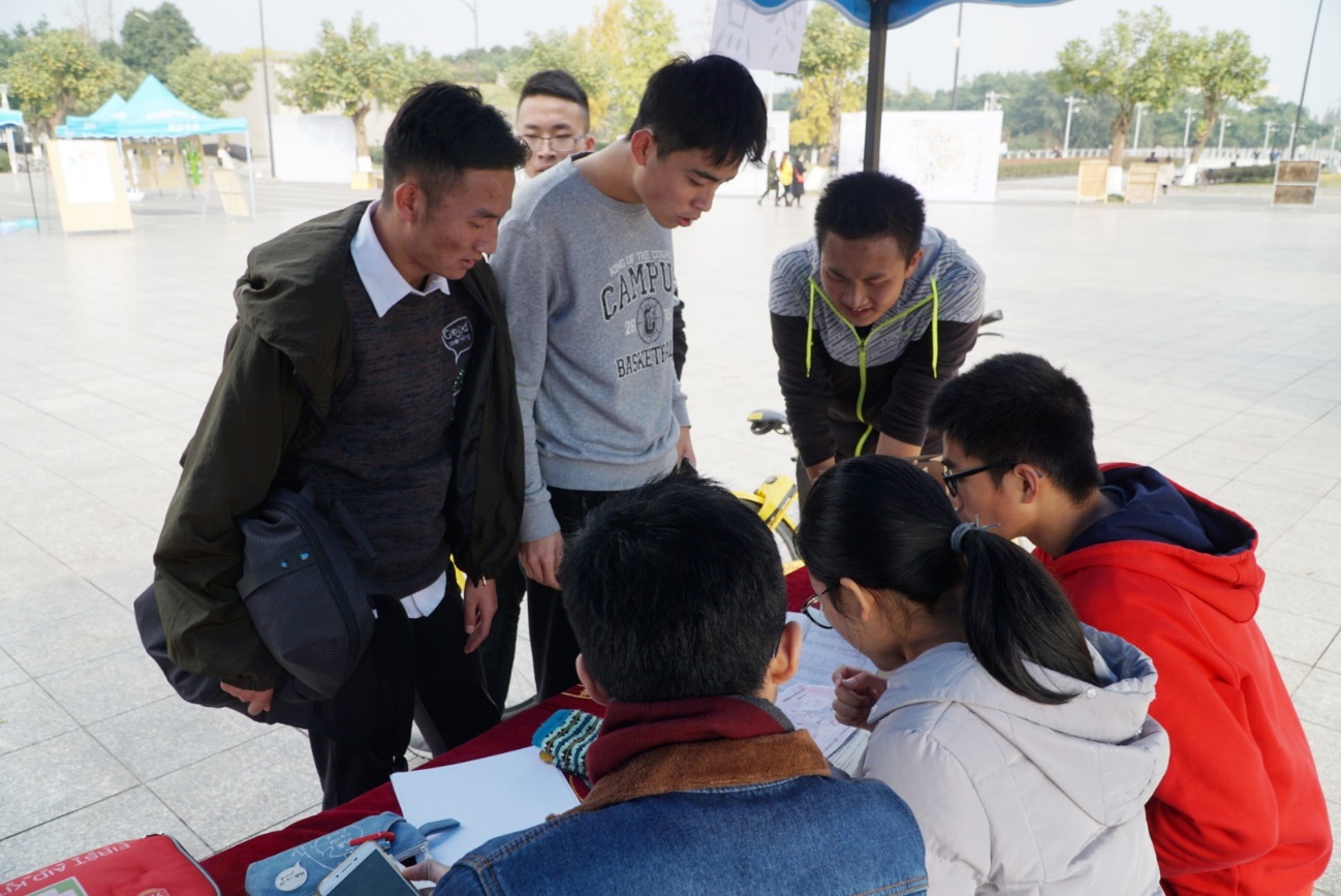 11月27日到29日,为了达到更好的宣传效果,工作人员进行了大规模的线上宣传,使更多同学提前了解并参与本次比赛。11月29日,工作人员又在青春广场上进行摆摊宣传,本次摆摊打破了传统单调的摆摊形式,通过“扎气球”与“有奖问答”的环节,吸引更多人的眼球。在熙熙攘攘的青春广场上,到活动摊位上体验游戏的同学络绎不绝。同学们首先通过“扎气球”的方式获得答题机会,题目中包含三个学院学科以及十九大的简单知识,完成答题任务后即可获得小礼品。这种趣味游戏的形式使前来参与游戏的同学既体验到了游戏带来的快乐,又在玩游戏的过程中学到了新知识,同时工作人员向前来参加游戏的同学介绍本次定向比赛,达到了很好的宣传效果。