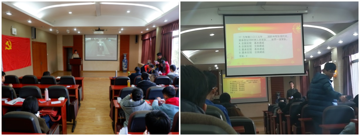 为贯彻落实党中央关于深入学习贯彻十九大会议精神的要求,推动十九大精神学习工作在全院学生中广泛开展,在学院党委的指导下,水电学院学生党支部联合组织 “学习十九大精神”知识竞赛。本次知识竞赛于2017年12月8日下午2点30分在水电大楼A311举办。本科2014级生党支部,本科2015级生党支部、研究生党支部成员均参与本次知识竞赛。研究生兼职辅导员文艳琳老师、17级兼职辅导员胡正红老师作为特邀嘉宾也积极参与知识竞赛互动。
