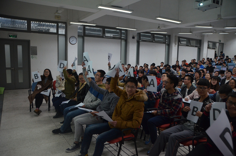 活动进入第三轮比赛环节——诗词大赛,各班代表以三人一组的方式回答了关于诗词的问题,并进行了“飞花令”的比拼。在“飞花令”环节中,同学们一展水电风采,各班同学僵持不下,在紧张的氛围中背出一首首鲜为人知的诗词,一度将活动氛围推向高潮。从中,也体现出了水电学子对中国诗词文化的热爱。最后,进行了“青春礼敬十九大”创意作品征集活动颁奖典礼,李亮老师为优秀作品的制作者颁予证书与奖品,并鼓励他们再接再厉,希望他们在之后的活动中取得更优异的成绩。至此,本次团日活动于晚9时正式结束。