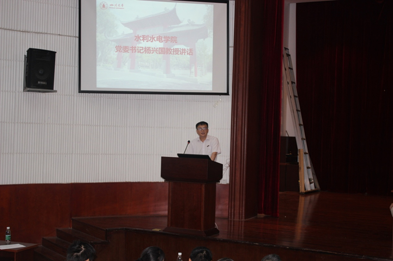 首先,水电学院党委书记杨兴国教授讲话,他对2017届毕业生取得的成绩和收获表示热烈的祝贺。杨书记说,同学们就像八九点钟的红太阳,有似锦的前程,并希望同学们秉承川大水电学子的精神,在工作和将来的学习中成为一名优秀的人。杨书记多次表达了对毕业生的不舍与牵挂,并祝福同学们在未来可以有更广阔的发展空间。