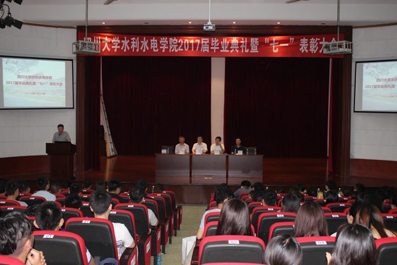 参加毕业典礼的有院党委书记杨兴国教授,院长刘超教授,副院长何江达教授,院党委副书记黄晓荣教授,水力学与山区河流开发保护国家重点实验室邓建辉教授,院党政管理人员,各系室领导,教师代表以及2017届全体毕业生。典礼由黄晓荣副书记主持。