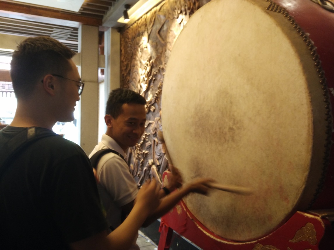 (外国友人体验三国文化——“击鼓”)
