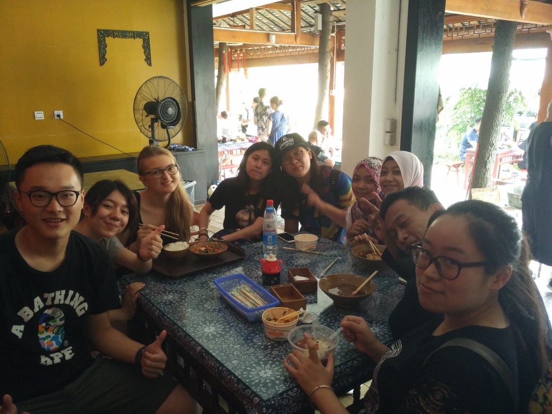(交流营的同学们品尝黄龙溪“一根面”)