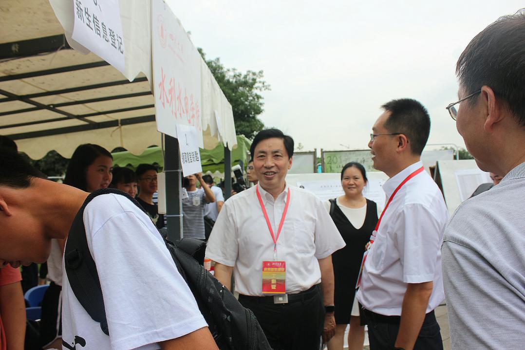 9日上午,校长谢和平院士与学工部陈森部长莅临学院迎新点视察工作。谢校长与陈部长对色漫网 的迎新工作表示了充分肯定,并向全体工作人员及志愿者致以亲切的慰问,向新同学表示热烈的欢迎。