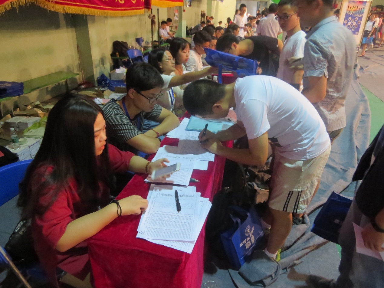 9月12日早上7点半,水电学院迎新工作已经准备就绪,所有志愿者全部到位,大约半个小时后,研究生新生已陆续前来,10点左右报到人数激增,迎来了一个小高峰,迎新现场显得热闹非凡。工作人员准备周全,按照迎新流程密切配合,娴熟地完成激活校园卡、办理绿色通道、发放研究生手册以及入学教育书籍等工作。