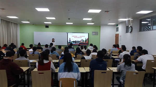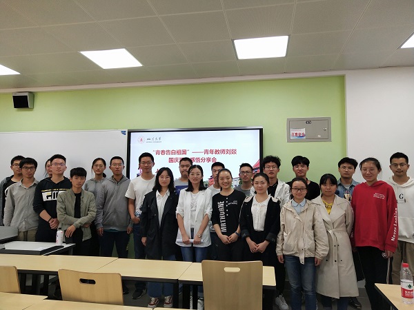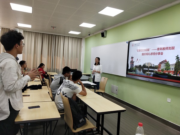 特聘副研究员刘燚,在江安校区第一教学楼C座106教室,分享了她受邀参加庆祝中华人民共和国成立70周年大会观礼活动的心得感悟。此次分享会由党委学生工作部主办,来自水利水电、化学工程、法学等学院的同学们参加了分享。