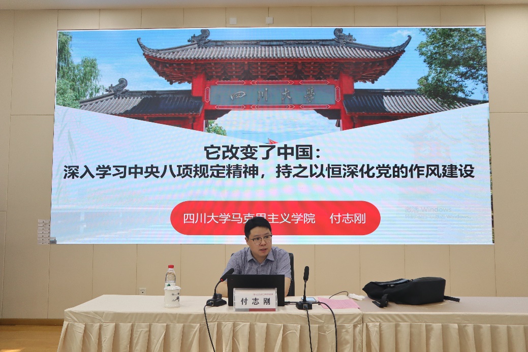 马克思主义学院付志刚教授围绕“中央八项规定精神与党的作风建设”进行专题授课,深入浅出地讲解了作风建设的重要意义和实践要求,强调要以典型案例开展学习教育,推进作风建设常态化长效化。