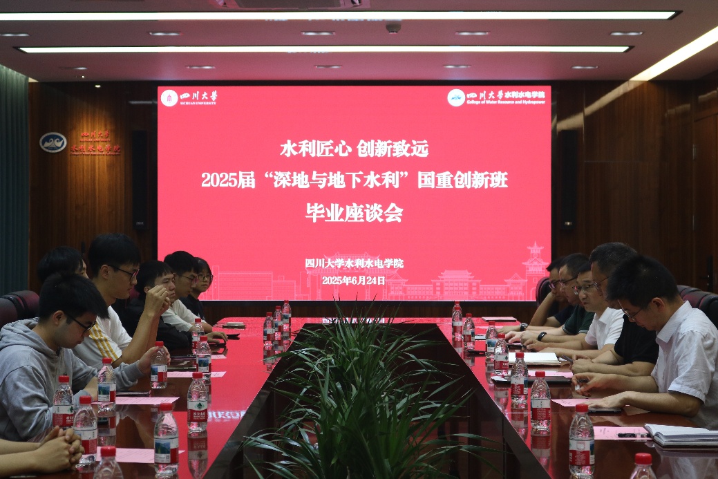 2025年6月24日上午,以“水利匠心,创新致远”为主题的2025届“深地与地下水利”国重创新班毕业座谈会在水电大楼A326顺利举行,院党委书记吴刚、山区河流保护与治理全国重点实验室副主任杨庆以及院本科教学科、学生工作科、2025届创新班班主任及创新班同学参加本次会议,座谈会由副院长谢红强主持。