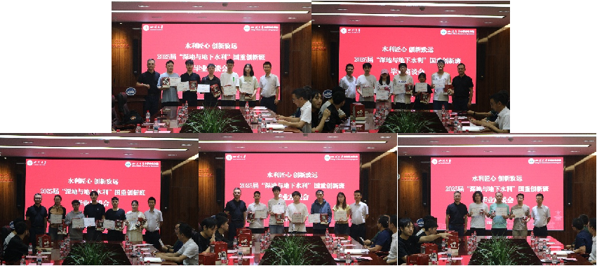副院长谢红强首先详细介绍了“深地与地下水利”国重创新班的建设背景、选拔机制、管理模式,并系统总结了2025届国重创新班学生取得的突出成绩,包括在创新研究、竞赛获奖、论文发表、专利授权等,对参与创新班建设、学生指导的老师表示衷心感谢,对同学们取得的优异成绩表示祝贺。随后,学院及全重室领导共同为创新班同学颁发了学习证书及毕业纪念品。