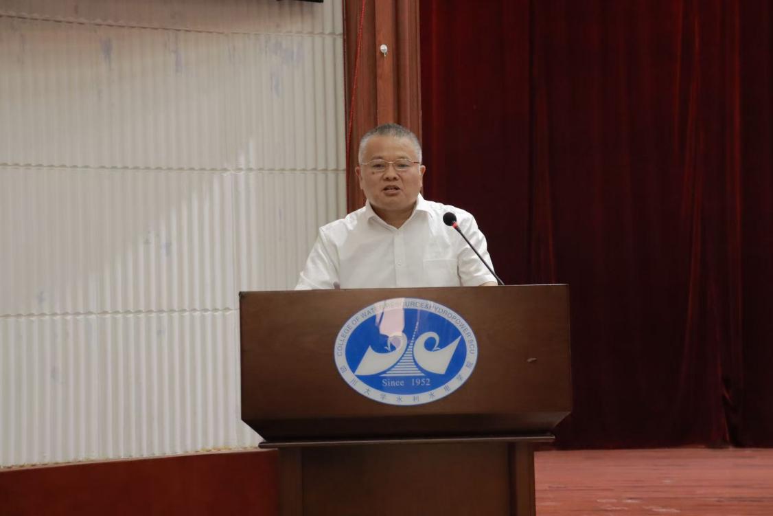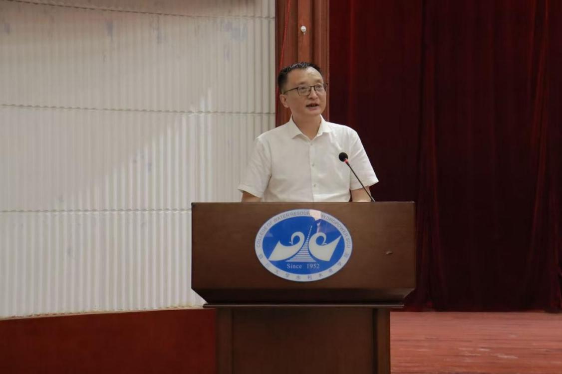 院长杨兴国教授在讲话中以水利水电事业在国家发展中的战略地位为切入点,回顾了川大水利人秉持“海纳百川,有容乃大”校训、践行“治水兴邦”使命的奋斗历程,向2025级新生详细阐述了学院在学科建设、科研创新、人才培养等方面的优势与成果。同时,杨院长对新生提出殷切期望:要锚定行业前沿,夯实专业基础,以严谨态度探索科研真理,以实干精神投身水利实践,努力成长为支撑国家水利水电事业发展的栋梁之才。