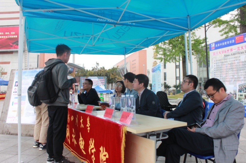 所属5个专业在江安校区青春广场举办了转专业咨询活动。为同学们答疑解惑的老师有水利水电工程系裴亮老师、水文与水资源工程系覃光华老师、农业水利工程系崔宁博老师、热能与动力工程系谢果老师、岩土与地下工程系裴建良老师。