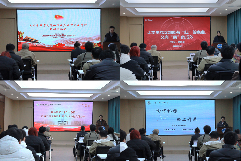 党员代表冯彬结合自身专业研究实践,分享了将论文写在祖国大地上的切身感受。西南石油大学石油与天然气工程学院的党员代表徐世昊以“奋发‘油’为”为主题,展现了能源领域学子的责任担当。成都理工大学环境与土木工程学院党员代表方竣向同学们分享了学习贯彻党的二十届四中全会精神的心得体会,让同学们更加深刻的认识党的理念。